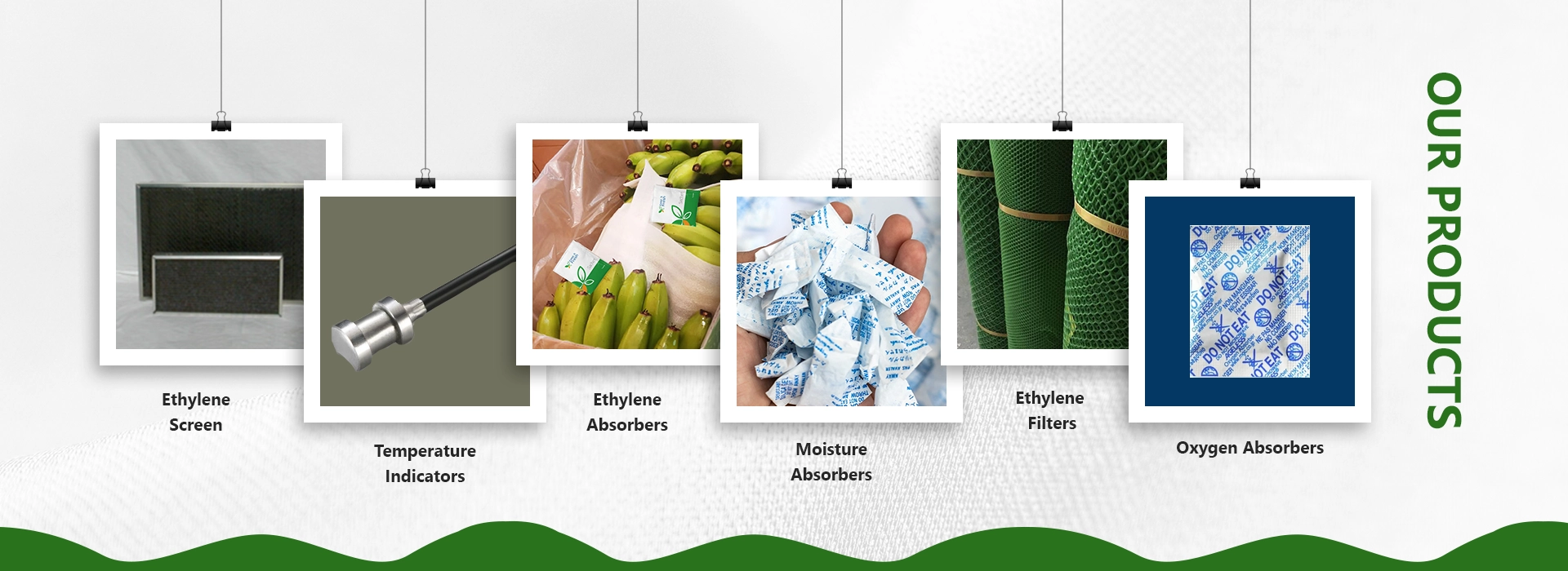 Fruits, vegetables and flowers release ethylene when they ripen, and if ethylene remains in the container, the ripening of the product is further accelerated. With the ethylene absorbers it is possible to lower the ripenning rate of food, thus extending its useful life.